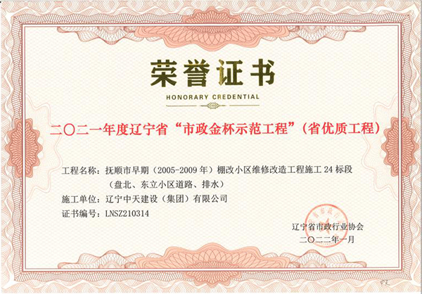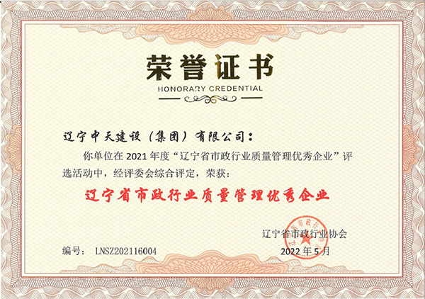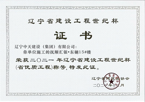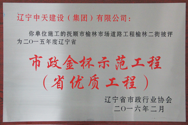 企業(yè)先后榮獲“全國優(yōu)秀施工企業(yè)”、 “中國AAA級信用企業(yè)”、“全國保障性安居工程建設勞動競賽先進單位”、“遼寧省最受尊敬企業(yè)”、“遼寧省優(yōu)秀建筑業(yè)企業(yè)”、“遼寧省工程建設質(zhì)量管理優(yōu)秀企業(yè)”、 “遼寧省守合同、重信用企業(yè)”、遼寧省“AAA級信用企業(yè)”、 “撫順市安全生產(chǎn)先進單位、紅旗單位”、“撫順市安康杯競賽先進集體”等多項殊榮。